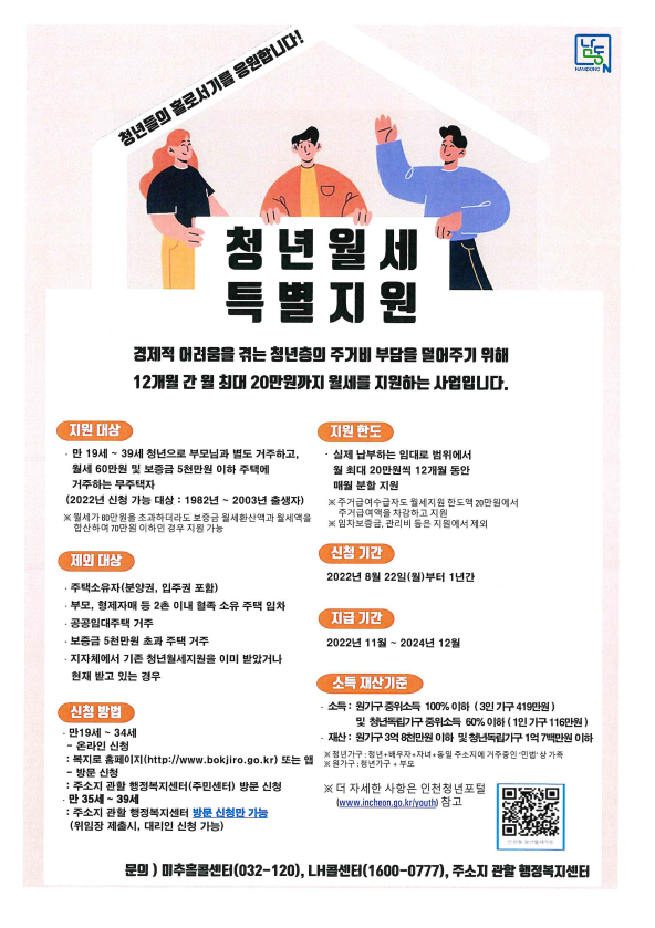 [금요저널] 인천시 남동구는 국토교통부 및 인천시와 연계해 오는 22일부터 ‘청년 월세 특별지원 사업’의 신청접수를 시작한다고 18일 밝혔다.