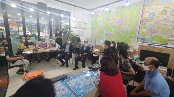 [금요저널] 평택시는 지난 19일 비전동 소사벌카페거리 상인회 사무실에서 환경국장을 비롯한 시 관계자, 상인회 등 20여명이 참석한 가운데 중심상업지역 문전수거 시범운영을 위한 주민 간담회를 개최했다.