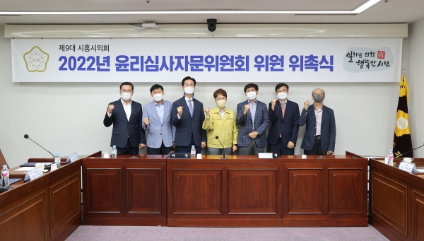 [금요저널] 시흥시의회가 22일 의회운영위원회 회의장에서 윤리심사자문위원회 위촉식을 열고 위원들에게 위촉장을 수여했다.