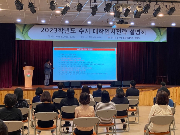 [금요저널] 구리시는 20일 구리시청 대강당에서 ‘2023학년도 수시전형 대비 대학입시전략’ 설명회를 개최했다.