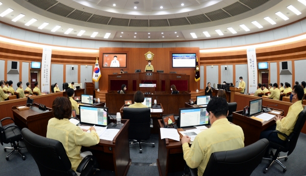 성길용 의장은 개회사를 통해 “한번 더 듣고 생각하고 행동하는 의회”로 시민의 더 나은 삶을 위해 제9대 오산시의회가 시민의 기억 속에 시민의 뜻을 존중하고 대표하고자 노력했던 의회로 남을 수 있도록 노력해 주길 바란다고 했으며“시민의 행복이라는 공통의 목표를 향해 균형을 맞춰야만 목적지까지 순항할 수 있으니 집행부와 의회는 상호 소통과 협력이 반드시 필요하다”고 집행부와 의원들에게 당부했으며 또한 4일간의 을지연습기간 동안 비상대비 훈련에 만전을 기해 주길 당부했다.
