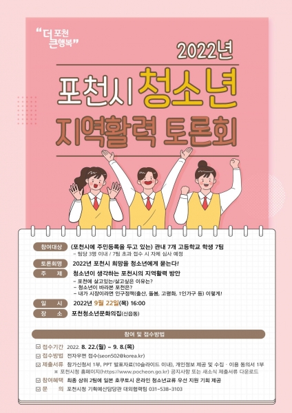 포천시, ‘2022년 포천시 청소년 지역활력 토론회’접수 시작
