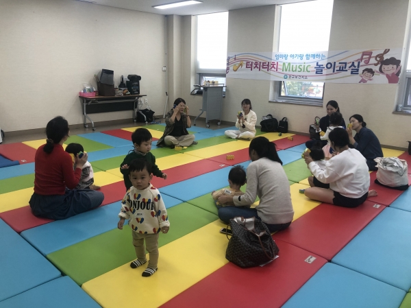터치터치 뮤직 놀이교실은 영아를 동반한 보호자 등 10가족이 모여 다양한 동작을 익히고 몸으로 음악을 표현하는 통합놀이 수업이 6회 과정으로 진행된다.