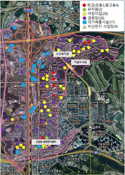 신갈동은 어린이집 29곳, 유치원 2곳, 초등학교 3곳, 경로당 28곳 등 취약계층 이용시설이 밀집한데다 경부고속도로 수원·신갈IC가 있어 교통량이 많은 지역이다.