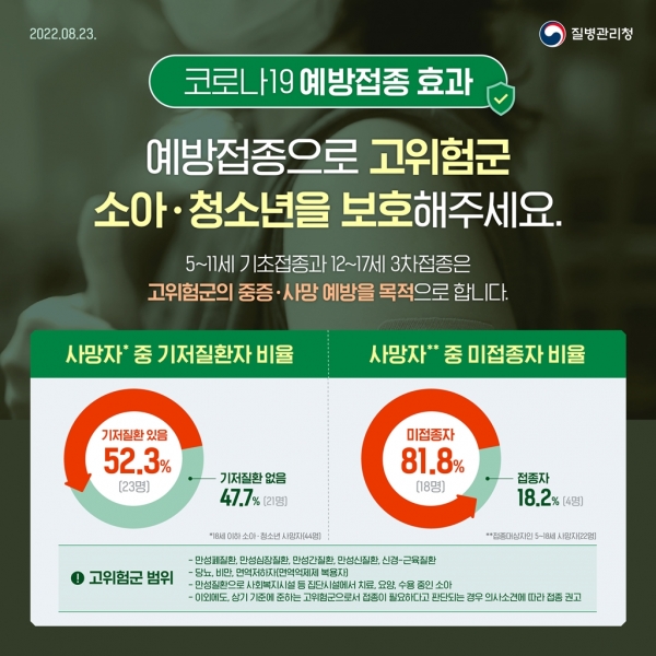특히 면역저하자, 50대 이상, 기저질환자 등의 고위험군은 중증·사망 예방을 위해 코로나19 4차 예방접종에 적극적으로 참여할 것을 독려했다.