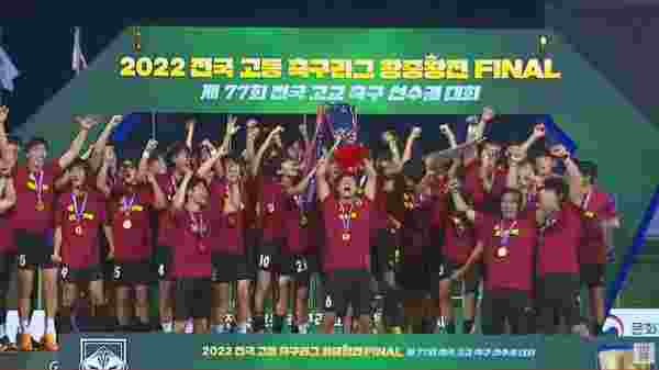 [금요저널] 평택진위FC가 지난 25일 창녕스포츠파크 4구장에서 열린 결승전에서 작년 준우승팀인 수원 매탄고를 3:0으로 이기며 2022 고교축구 왕중왕전의 우승컵을 들어올렸다.