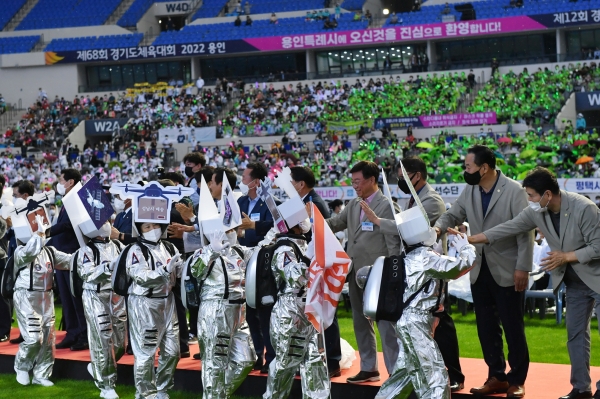 ‘4차산업 특별도시 성남’ 콘셉트로 단장한 선수단의 화려한 입장을 시작으로 경기도 31개 시·군 18,000여명의 선수들이 입장했다.