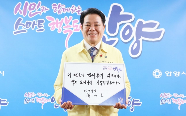 이날 최대호 안양시장과 송재환 부시장, 간부공무원 등 15명은 공직 내 성차별적 관행을 근절하고 성희롱·성폭력에 무관용 방침을 실천할 것을 다짐하며 메시지 작성과 인증 사진을 찍었다.
