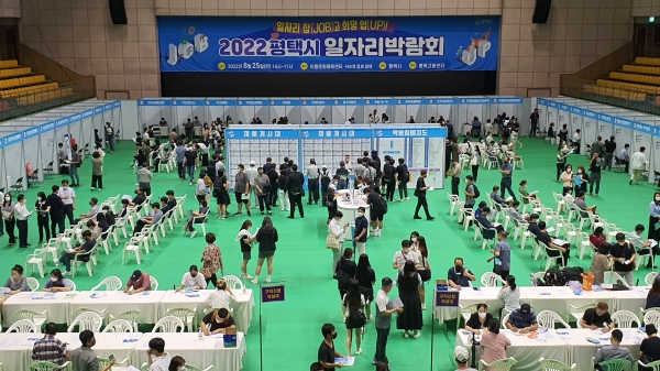 [금요저널] 평택시는 지난 25일 이충문화체육센터에서 ‘2022년 평택시 일자리 박람회’를 49개 사업장과 1,100여명의 구직자가 참여한 가운데 성황리에 마쳤다.