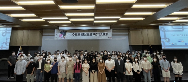 이번 수료식은 지난 7월 9일부터 8월 27일까지 매주 토요일 7회차로 진행한 멘토링을 마무리하는 시간으로 멘토와 멘티들은 그간 만들어온 진로 포트폴리오를 발표하고 멘토링 사례를 함께 나눴다.