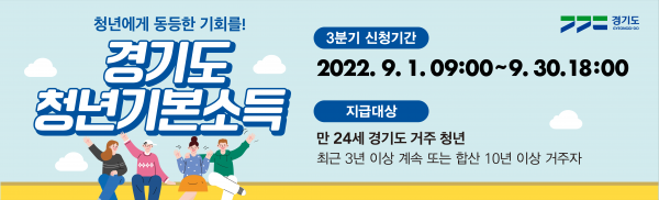 [금요저널] 청년기본소득 3분기 대상자에 대한 신청접수가 9월 1일부터 9월 30일까지 진행된다.