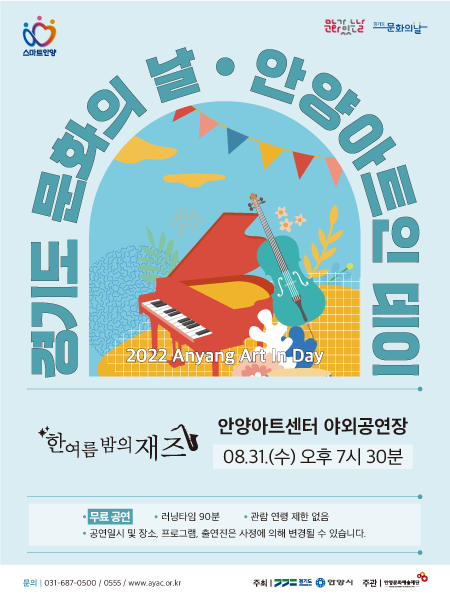 [금요저널] 안양문화예술재단은 시민의 문화 향유권 확대를 위해 경기도 문화의 날 주간인 8월 31일과 9월 1일 양일간 7시 30분에 안양아트센터 야외공연장에서 ‘안양아트인 데이’ 공연을 진행한다.