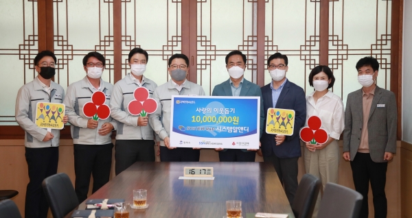 [금요저널] 주식회사 시스템알앤디는 최근 평택시청 대외협력실에서 사랑의 이웃돕기 성금 1,000만원을 평택행복나눔본부에 전달했다.