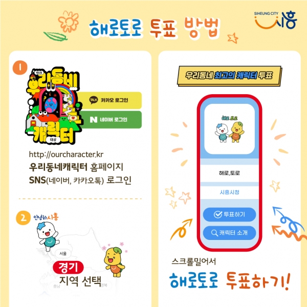 신경희 시흥시 홍보담당관은 “시흥시 대표 캐릭터 해로와 토로가 좋은 성적을 거둘 수 있도록 많은 관심과 성원을 부탁한다”며 “캐릭터 인지도 향상뿐 아니라 시흥시 도시브랜드 가치를 높일 수 있도록 다양한 홍보 노력을 기울이겠다”고 밝혔다.