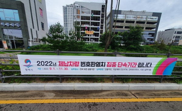 [금요저널] 평택시는 납세자의 성실납세 분위기 조성과 자주재원 확보를 위해 9월부터 지방세, 세외수입 고액·상습 체납차량에 대한 번호판 집중 영치 단속을 실시한다고 밝혔다.
