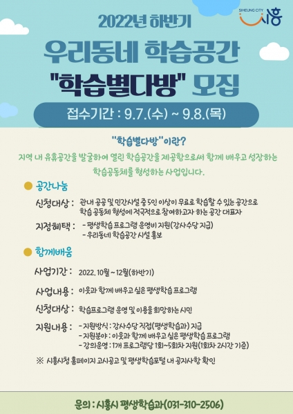 [금요저널] 시흥시가 이웃과 함께 다양한 평생학습을 통해 소통하는 우리동네 학습공간 ‘학습별다방’에 공간 또는 프로그램 운영으로 함께할 참여자를 모집한다.