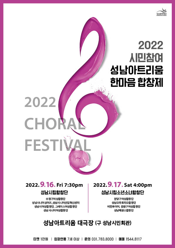 [금요저널] 성남문화재단이 음악을 통한 성남시민의 화합과 소통을 위해 ‘2022 시민참여 성남아트리움 한마음 합창제’를 개최한다.