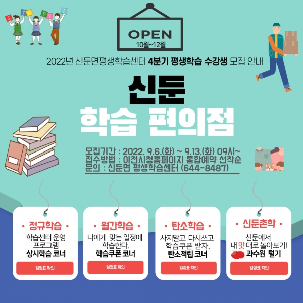 [금요저널] 신둔면 평생학습센터는 4분기 평생학습 프로그램 신둔 학습 편의점 운영 계획을 발표 했다.