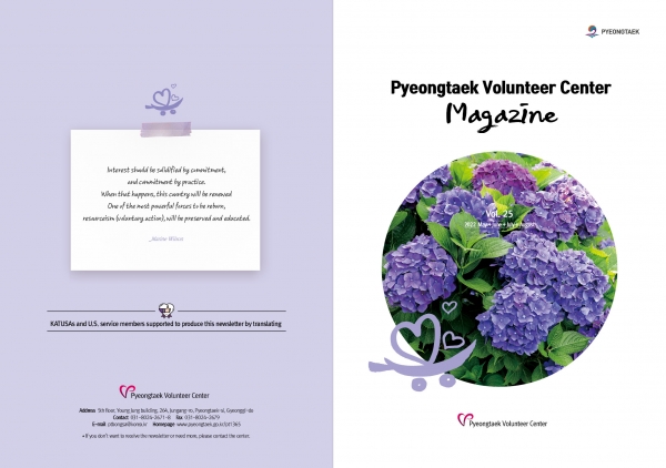 ‘사랑의 수레’로 처음 제작된 영문소식지는 2022년 평택시자원봉사센터 매거진으로 재탄생해, 2021년 하반기부터 2022년 상반기까지 주한미군의 자원봉사활동과 상호교류 과정을 함께 담았다.