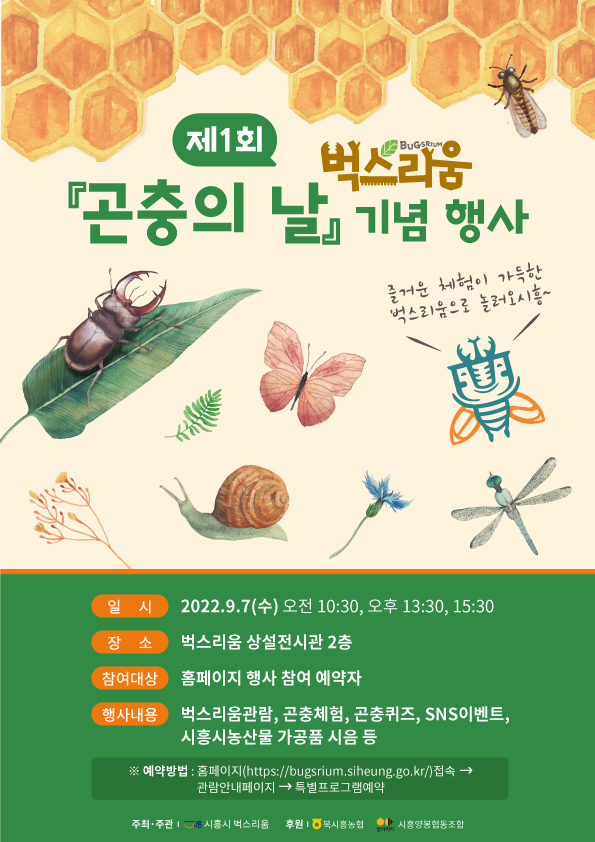 제1회 벅스리움 ‘곤충의 날’ 기념행사 9월 7일 즐거운 체험 가득한 벅스리움으로 놀러오시흥~