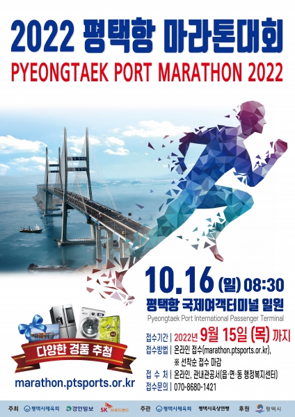 올해로 제18회를 맞이하는 이번 대회는 평택항 일대에서 상쾌한 바닷바람을 맞으며 달릴 수 있는 평택시 대표 체육행사로 오는 10월 16일에 평택항 국제여객터미널 일대에서 개최될 예정이다.