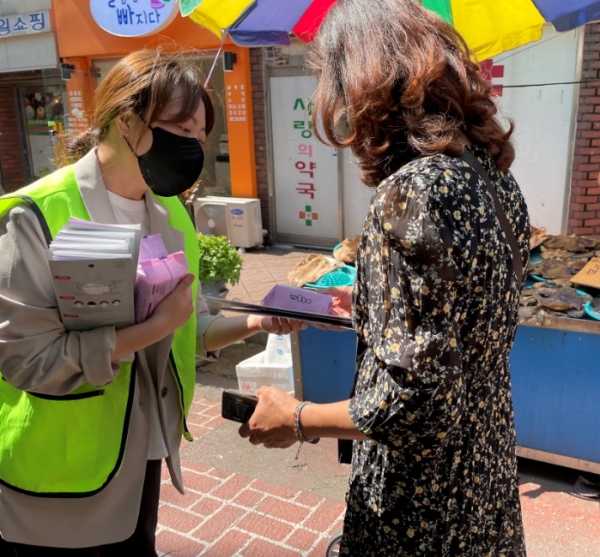 센터는 명절을 맞아 시장에 방문하는 지역주민들에게 안내문과 홍보물을 배부하며 캠페인을 펼쳤다.