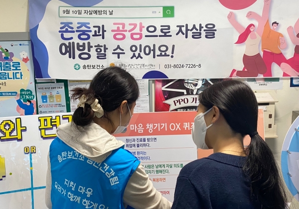 [금요저널] 평택시 송탄보건소 정신건강복지센터는 자살예방의 날을 맞아 국제대학교 캠퍼스, 평택북부노인복지관에서 시민들을 대상으로 지난 6일부터 8일까지 3일간 자살예방 캠페인을 진행했다.