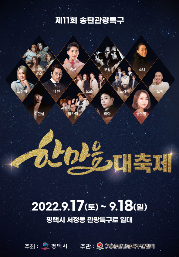 [금요저널] 사단법인 송탄관광특구연합회가 주관하고 평택시가 주최하는 ‘송탄관광특구 한마음 대축제’가 오는 17일과 18일 양일간 송탄출장소 앞 관광특구로 일대에서 열린다.