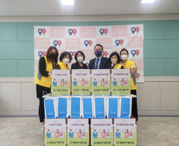 [금요저널] 인천 중구 운서동지역사회보장협의체는 지난 14일 스카이72 , ㈜영종오렌지의 후원을 받아 경로당 지원사업을 추진했다고 밝혔다 이번 사업은 1사 1경로당 자매결연을 맺은 운서동 관내 9개 경로당을 대상으로 스카이 72와 ㈜영종오렌지의 후원으로 진행됐다.
