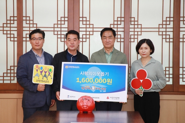 [금요저널] 원할머니보쌈족발 평택안중점은 지난 6일 추석 명절을 맞이해 평택행복나눔본부에 이웃돕기 성금 160만원을 전달했다.