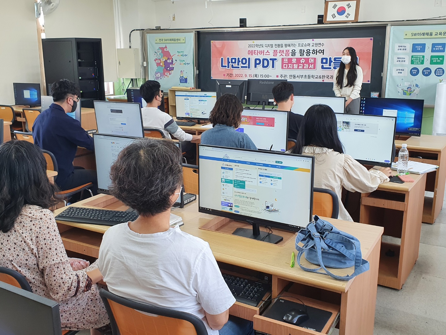 안동시 안동서부초등학교(교장 김의식)은 9월 15일(목) 안동송현초 장○울 교사를 초청하여 본교 교원을 대상으로 디지털 전환을 향해가는 프로슈머 교원연수(컨설팅)를 실시하였다.