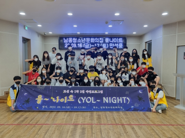 만수동 소재 남동청소년문화의집에서 진행된 ‘욜~ 나이트’는 학교를 벗어나 다양한 리더십의 유형을 배우며 자유로운 의사소통을 통해 참된 리더로 성장을 돕는 프로그램으로 청소년들의 자율적 참여와 능동적인 활동으로 진행됐다.