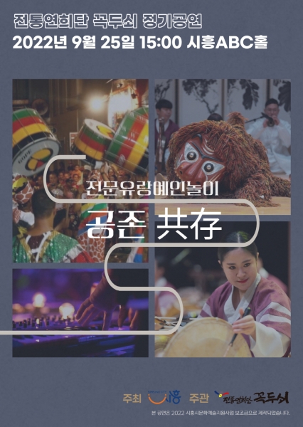 [금요저널] 시흥시가 주최하고 전통연희단 ‘꼭두쇠’가 주관하는 ‘2022 전통유랑예인놀이 ‘공존’’이 오는 25일 오후 3시, ABC행복학습타운 ABC홀에서 열린다.