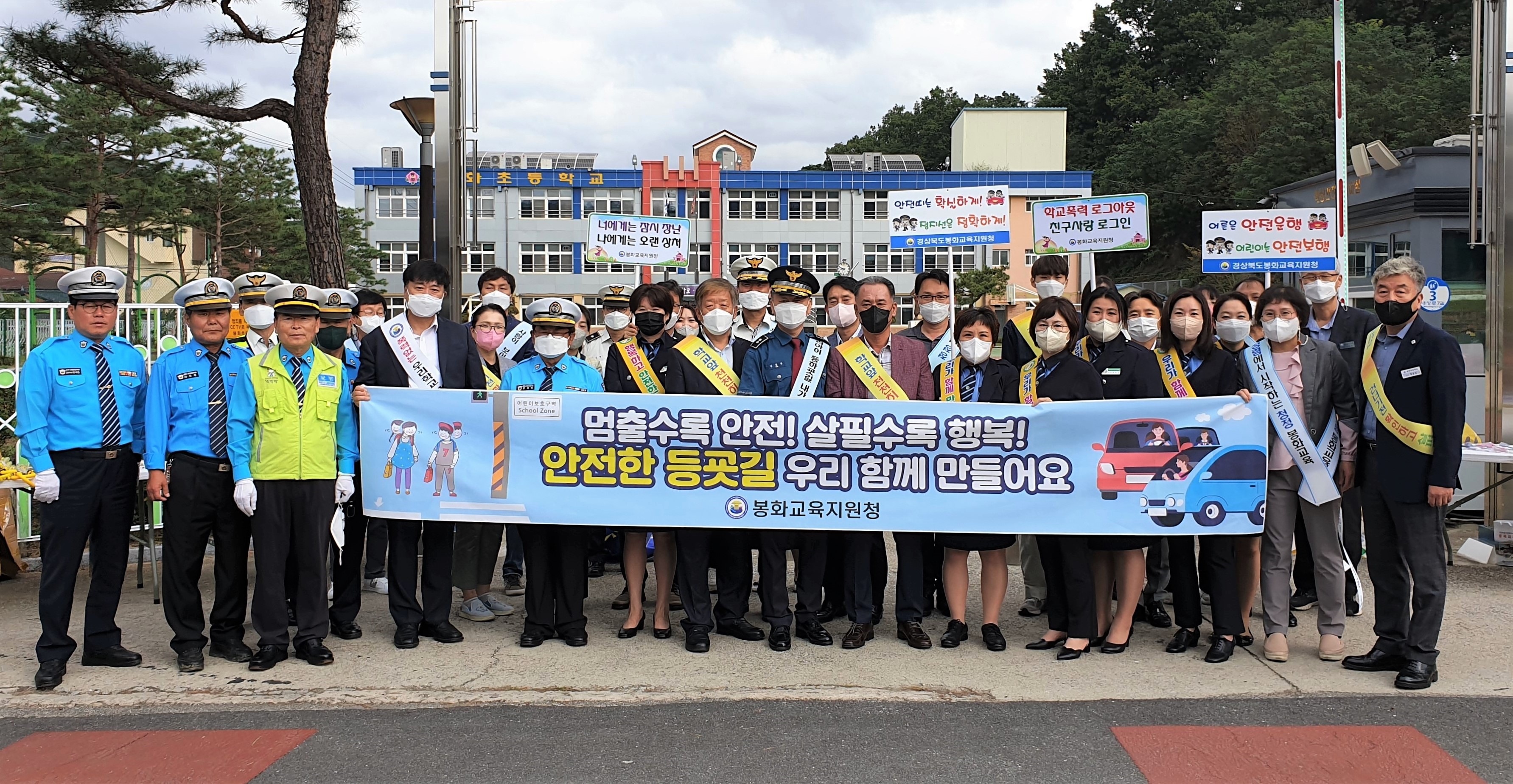 경상북도봉화교육지원청(교육장 박명호)은 2022년 9월 20일(화) 봉화경찰서, 봉화군청, 녹색어머니회, 모범운전자회 등과 함께 봉화초등학교 교문에서 2학기 등굣길 교통안전 및 학교폭력예방 캠페인을 실시하였다.