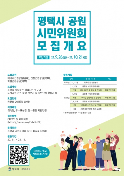 이번 평택시 공원 시민위원회는 오는 11월에 시작해 2023년 11월까지 활동한다.