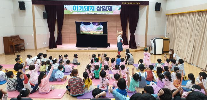 □ 경상북도교육청 의성도서관(관장 박상선)은 9월 독서의 달 행사로 9월 21일(수) 관내 유아 및 초등 저학년 어린이 200여 명을 대상으로‘아기돼지 삼형제’인형극 공연을 도서관 시청각실에서 열었다.