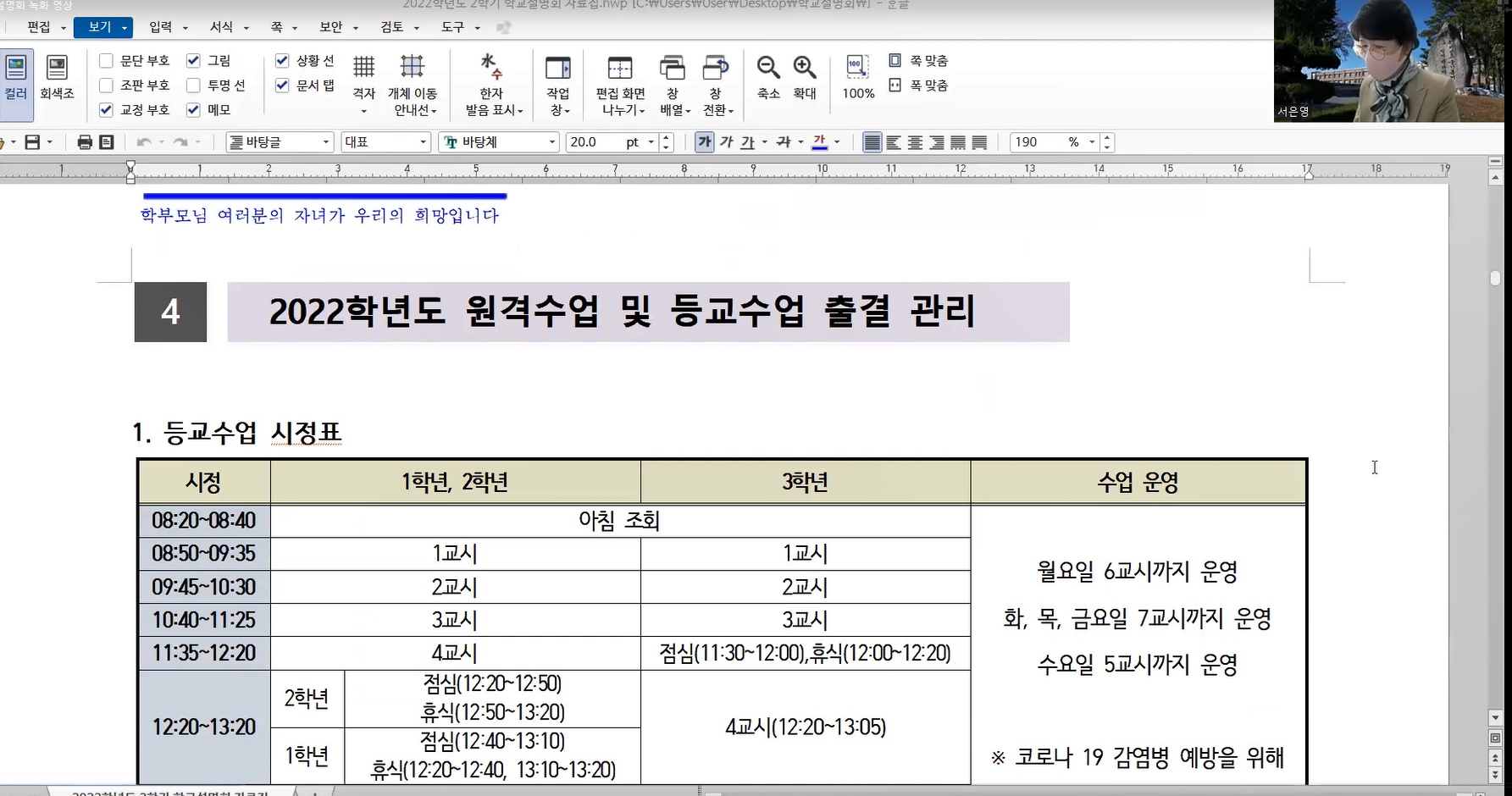 □ 본교 권정인 교장은 “이번 실시간 쌍방향 학교설명회를 통하여 코로나19가 확산되는 상황 속에서 학교의 교육활동 정보를 안전하게 전달하고 학부모님들의 의견을 폭넓게 수렴하는 시간이 되었다.”라고 소감을 밝혔다. 또한, 학교 설명회에 참석한 학부모님께서도 학교의 전반적인 교육활동에 관하여 설명을 듣고 의미 있는 시간이었다고 소감을 밝혔다.