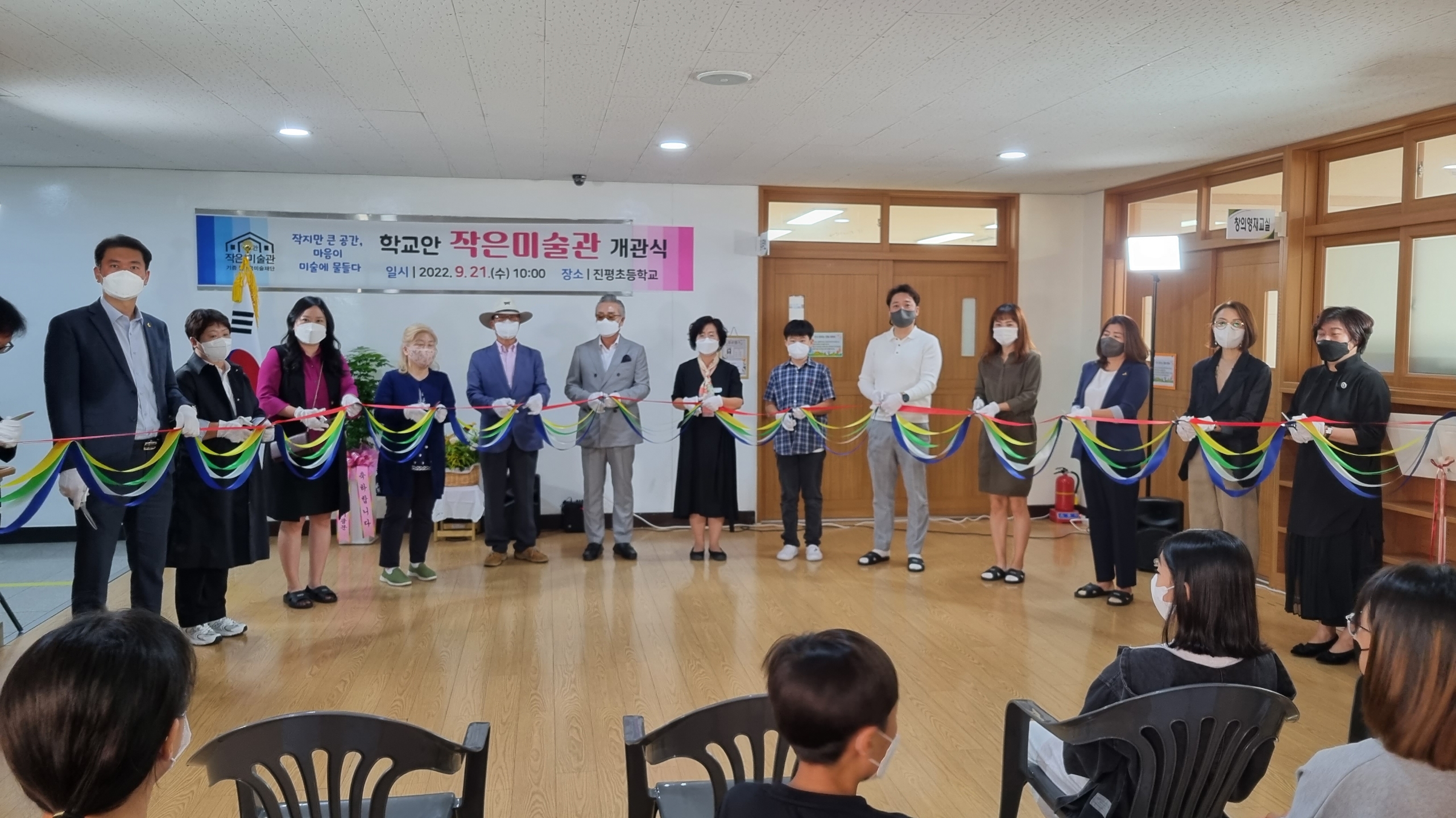 □ 진평초등학교 김부옥 교장은 “이번 학교안 작은미술관은 학생들로 하여금 예술 작품 감상을 통해 진로 교육에 도움을 받고 학생들의 심미안과 예술적 역량을 높일 수 있을 것이다” 며 “단순히 학교공간을 꾸미는데 그치는 것이 아닌 학교 교육과정과의 연계, 그리고 지역 주민들과 함께하는 다양한 프로그램을 통해 학교가 지역의 부분적으로나마 예술문화센터로서 역할을 담당할 수 있겠다.”고 말했다.