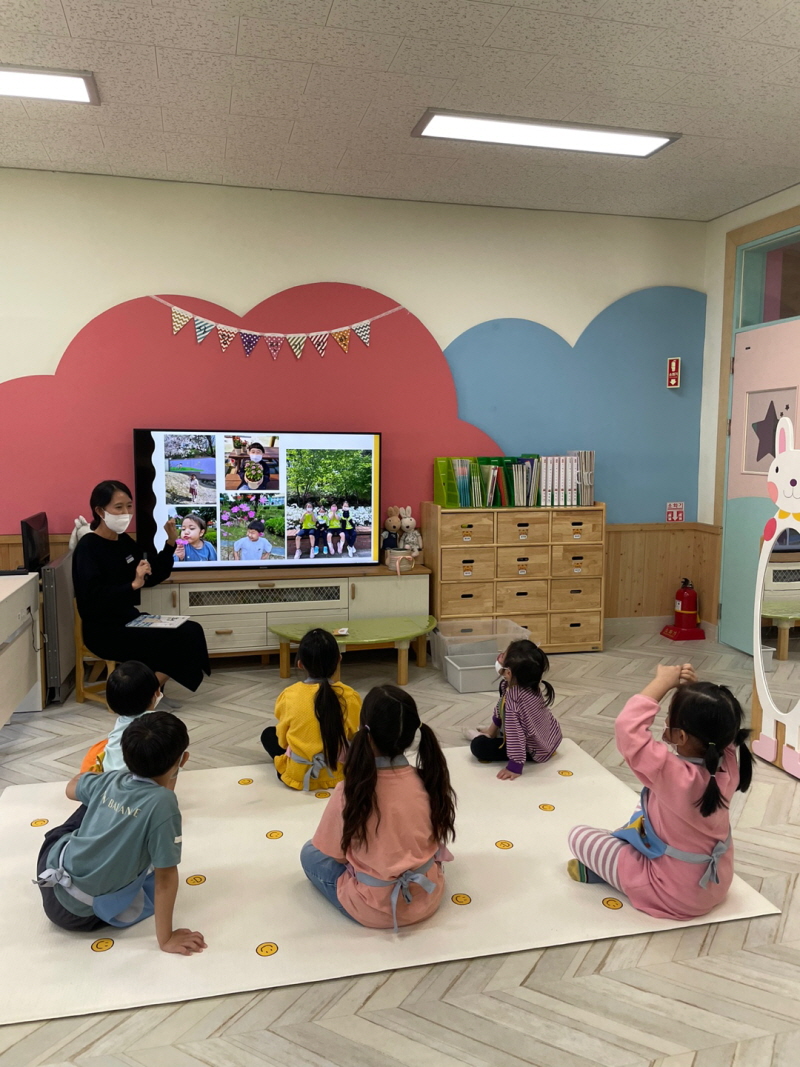 □ 평소 아이들이 학교에 핀 다양한 종류의 꽃에 관심을 가지는 모습을 사진으로 보며 행복했던 1학기 경험들을 이야기 나누고 부모님께 직접 쓴 편지를 전하며 사랑의 마음을 표현하는 시간을 가졌다.