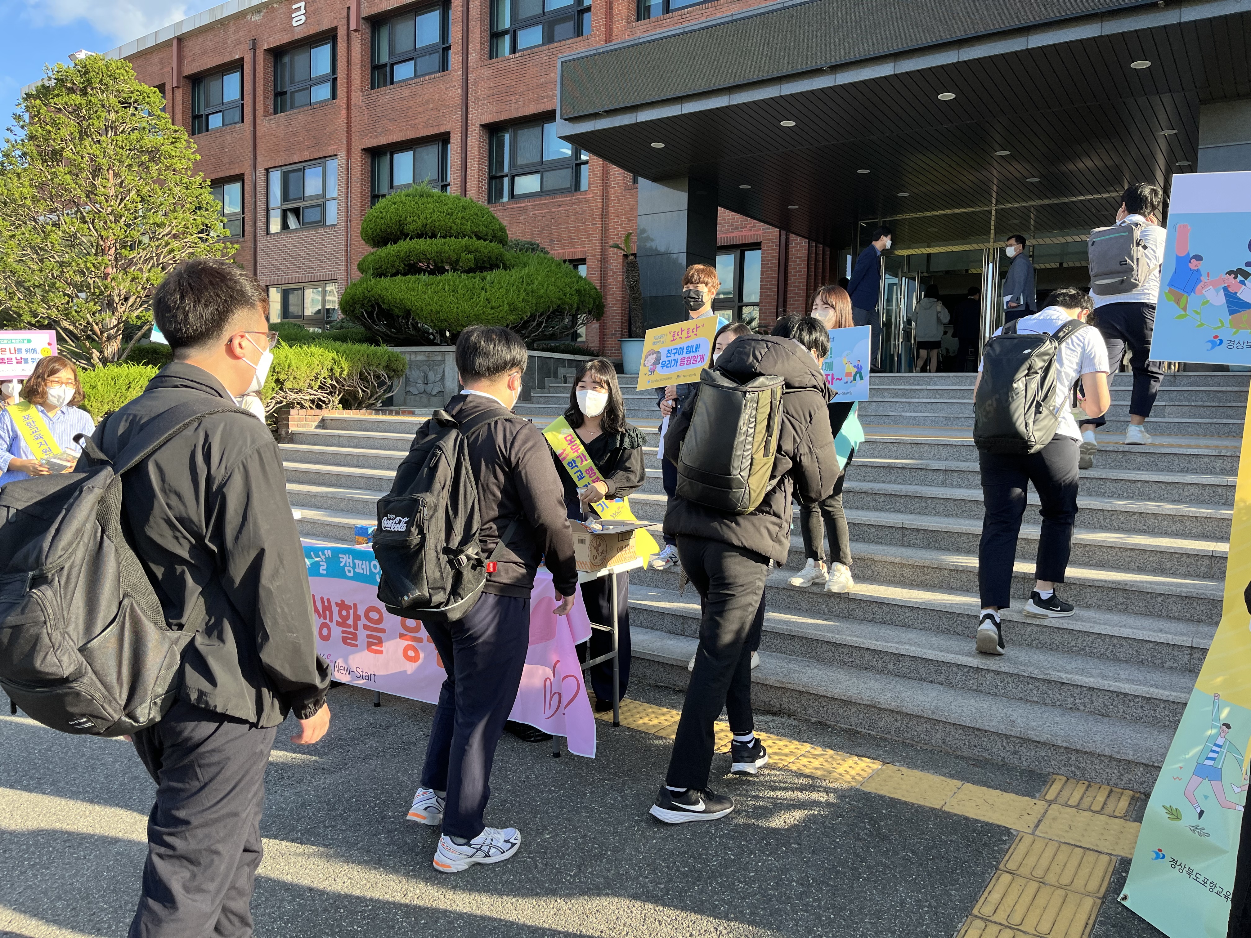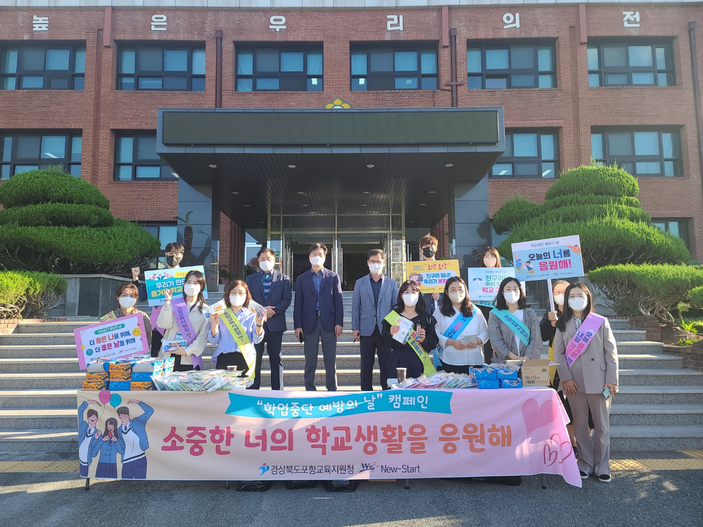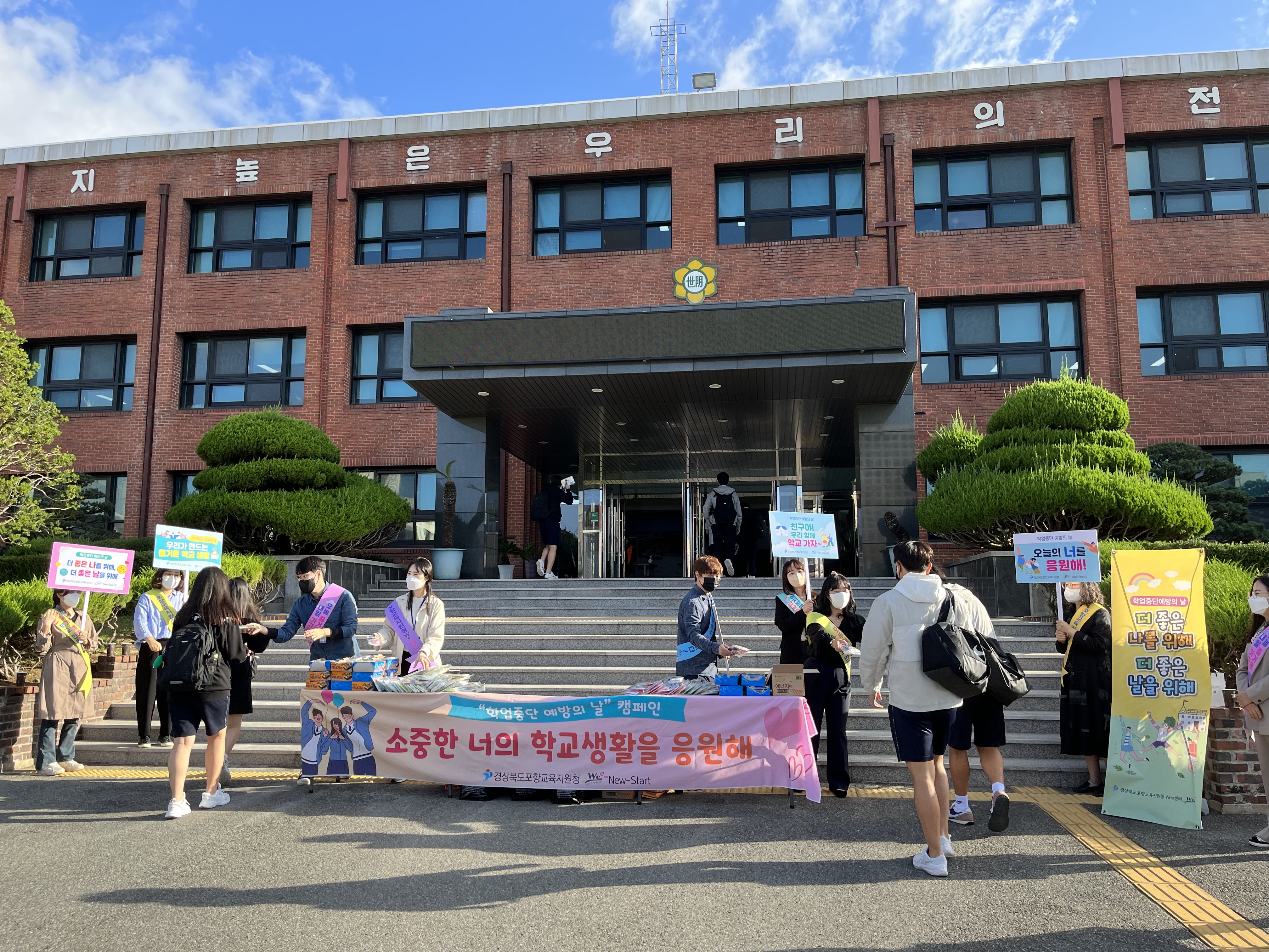 경상북도포항교육지원청 Wee센터(센터장 김진규)는 9월 21일(수) 세명고등학교에서 학생 및 교사를 대상으로 학업중단예방 및 학업중단숙려제 홍보를 위한 등굣길 캠페인을 실시하였다.