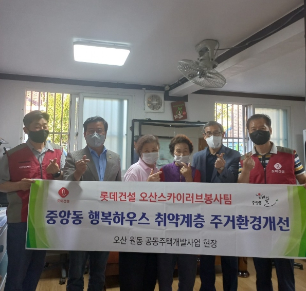 [금요저널] 오산시 중앙동행정복지센터는 롯데건설 오산스카이러브봉사단, 지역구 이상복 시의원과 함께 ‘중앙동 행복하우스 취약계층 주거환경 개선사업’을 21일에 진행했다고 밝혔다.