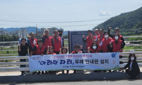 [금요저널] 동두천시 소요동 주민자치위원회는 지난 22일 주민자치 특색사업으로 아리랑 다리 유래 안내판을 설치했다고 밝혔다.