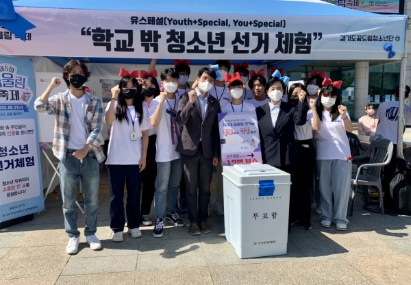 또한 정윤경 의원과 장민수 의원은 학교 밖 청소년의 권리 옹호 및 정책 제안 활동을 통해 청소년의 목소리를 내는 참여기구인 경기도 꿈드림 청소년단이 준비한 “학교 밖 청소년 선거 체험”에 참여해 제4대 꿈울림 선거 후보들의 공약을 살펴보고 소중한 한 표를 행사했다.