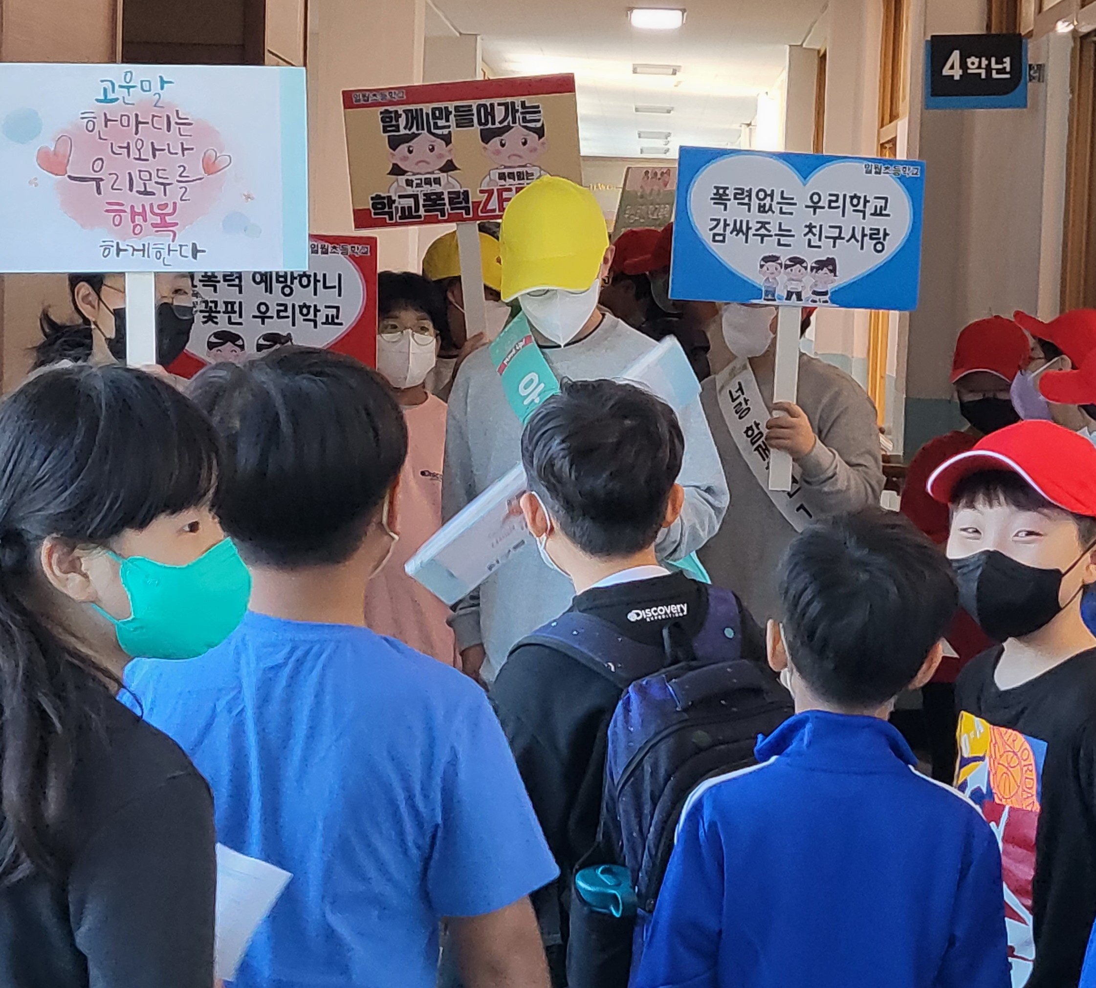 행사에 앞서 아침 시간에는 학생자치회 임원 및 6학년 학생이 중심이 되어 학교폭력 예방을 위한 캠페인 활동 및 학교폭력 예방 관련 O, X 문제 풀이를 통해 서로를 존중하고 격려하는 학교생활을 하고자 다짐하였다.
