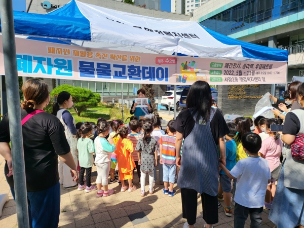 조한석 동장은 “최근 환경오염에 따른 기후변화로 큰 피해가 속출하고 있는데 폐자원 물물교환데이를 통한 아이들의 환경에 대한 노력과 관심이 친환경 녹색도시 조성에 큰 힘이 될 것이라고 믿는다”며 “자원봉사로 참여해주신 통장협의회에 감사드린다”고 말했다.
