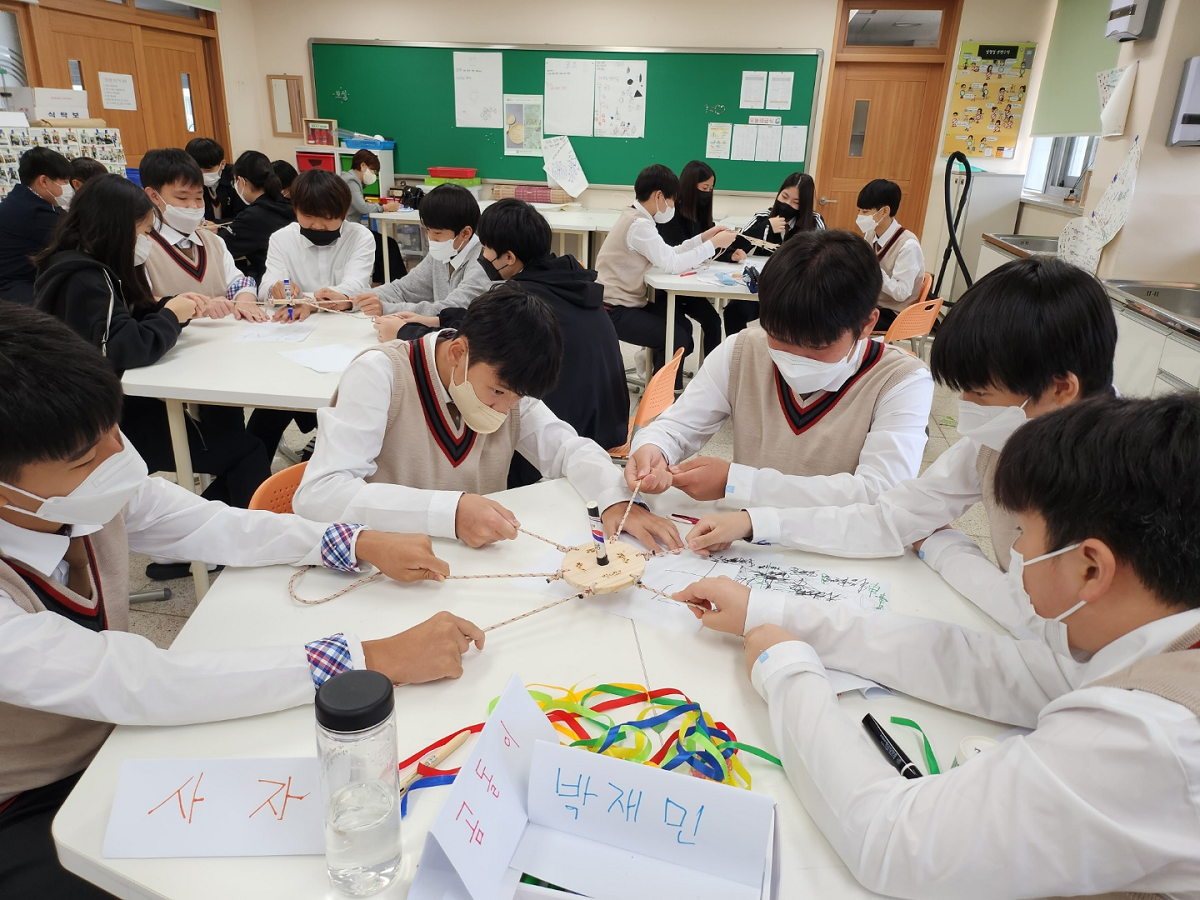 □ 이번 프로그램은 인지, 정서, 행동의 전인적 측면에서의 자기감정 조절 능력 향상과 타인과의 소통 및 협업 능력 신장을 주제로 진행되었다. 1, 2교시는 가치관 형성과 공감 소통에 관련된 활동 중심 수업이 이루어졌으며, 3, 4교시에는 동료 학습자와의 협력이 요구되는‘나만의 소품 만들기’활동을 진행하였다.