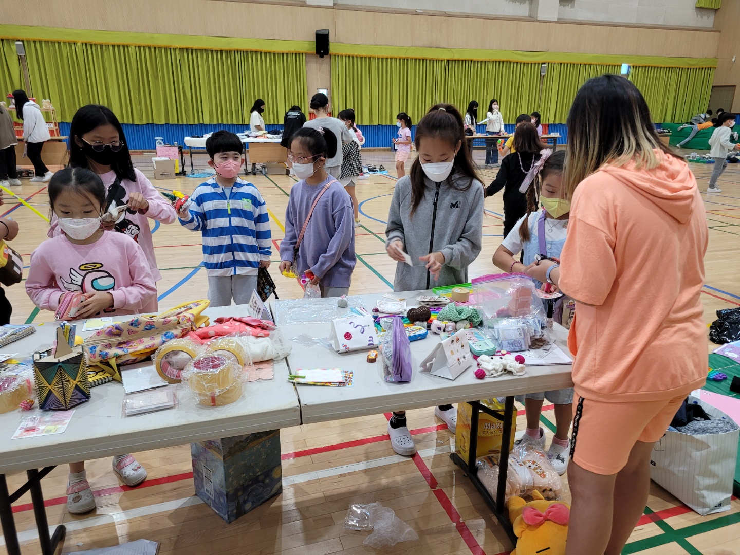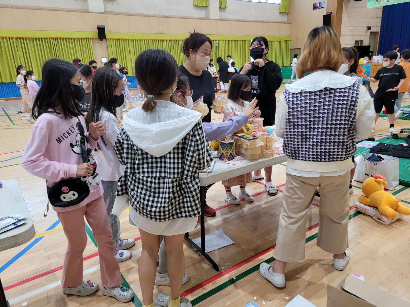 □ 학생들은 각자 집에서 쓰지 않는 학용품이나 책, 인형과 같은 물건을 가져와 친구들에게 싼 가격에 판매하였다.