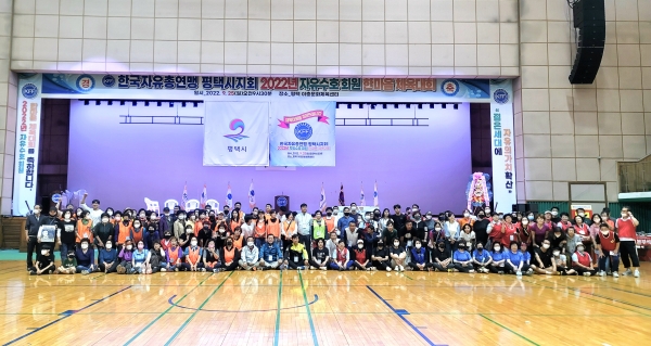 [금요저널] 한국자유총연맹 평택시지회는 청명한 가을 모두가 화합하는 축제의 장인 2022년 자유수호 회원 한마음 체육대회를 지난 25일 평택 이충문화체육관에서 회원 350여명이 한자리에 모인 가운데 성대히 치뤘다.