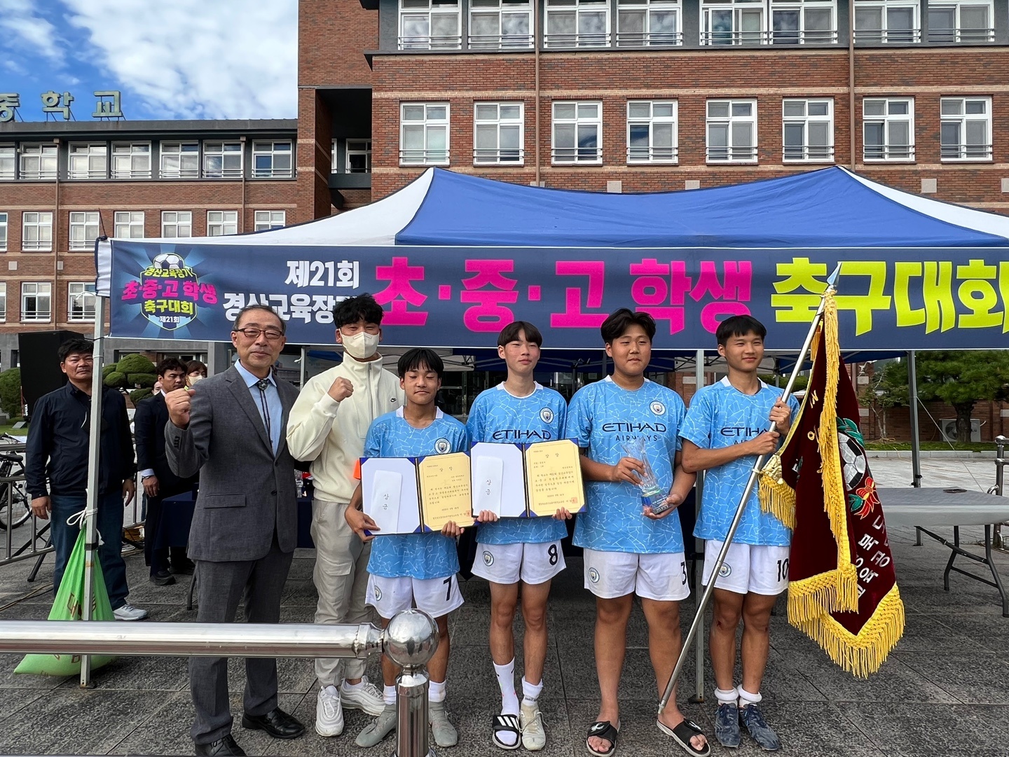 지난 2022년 9월 24일(토) 경상북도경산교육지원청 주최, 경산교육공동체시민연합회가 주관하여 경산중·고등학교 운동장에서 열린 ‘제21회 경산교육장기 초·중·고 학생축구대회’에 경산 장산중학교(교장 윤순영) 축구동아리가 참가하여 중등부 우승의 영광을 안았다.