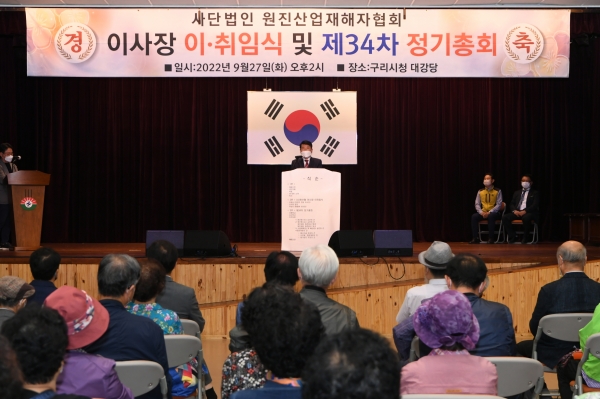 [금요저널] 구리시는 원진산업재해자협회가 27일 시청 대강당에서 이사장 이·취임식 및 제34차 정기총회를 개최했다고 밝혔다.